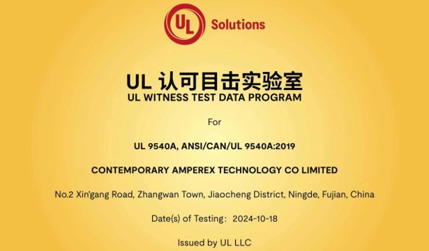 全球首家!寧德時(shí)代獲UL Solutions授權(quán)第一方UL9540A認(rèn)可目擊實(shí)驗(yàn)室